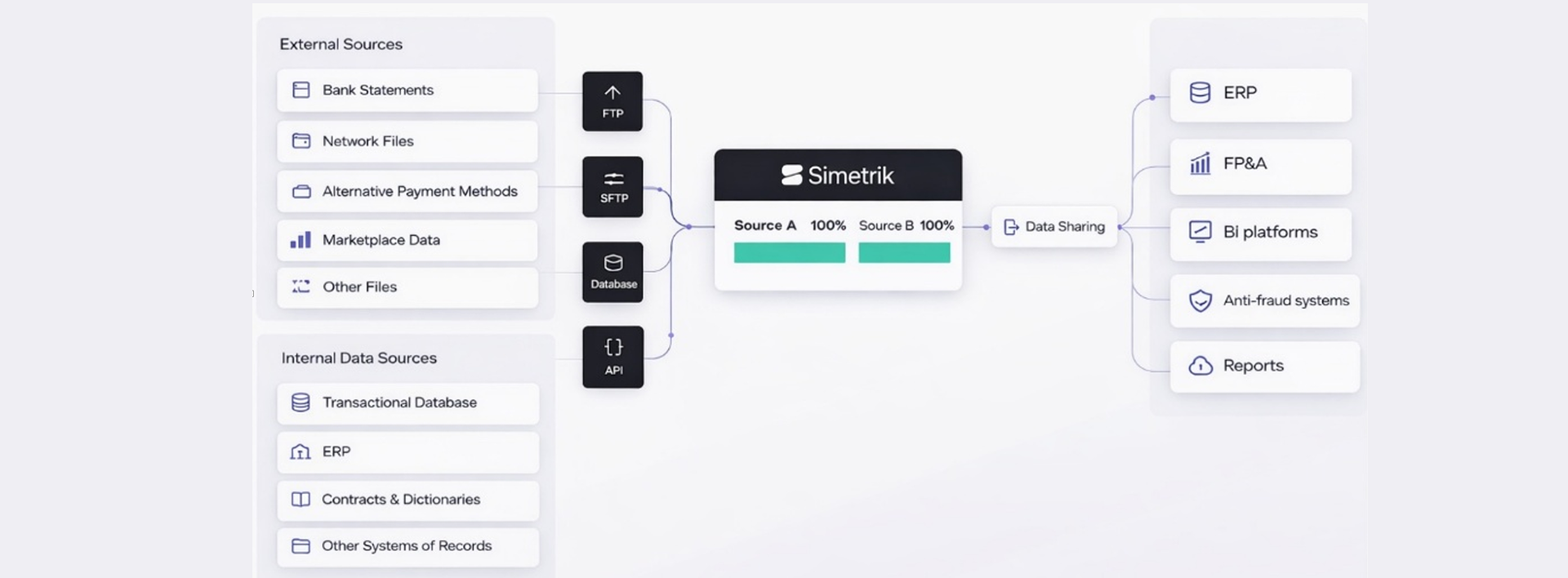 Simetrik platform: Integrate > Reconcile > Accelerate