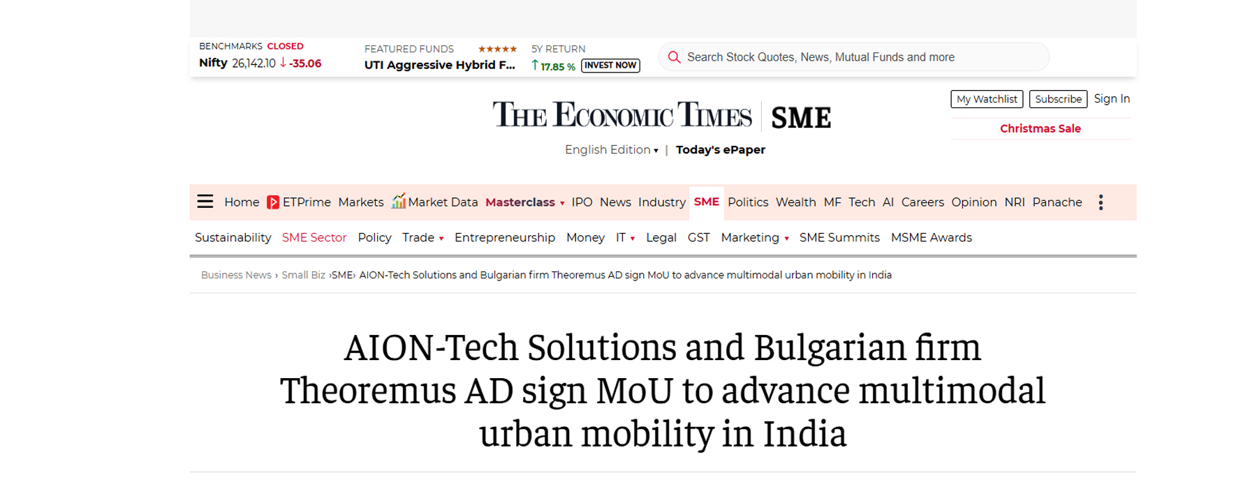 Aion Tech Solutions and Bulgarian Firm Theoremus AD Sign MoU to Advance Multimodal Urban Mobility in India