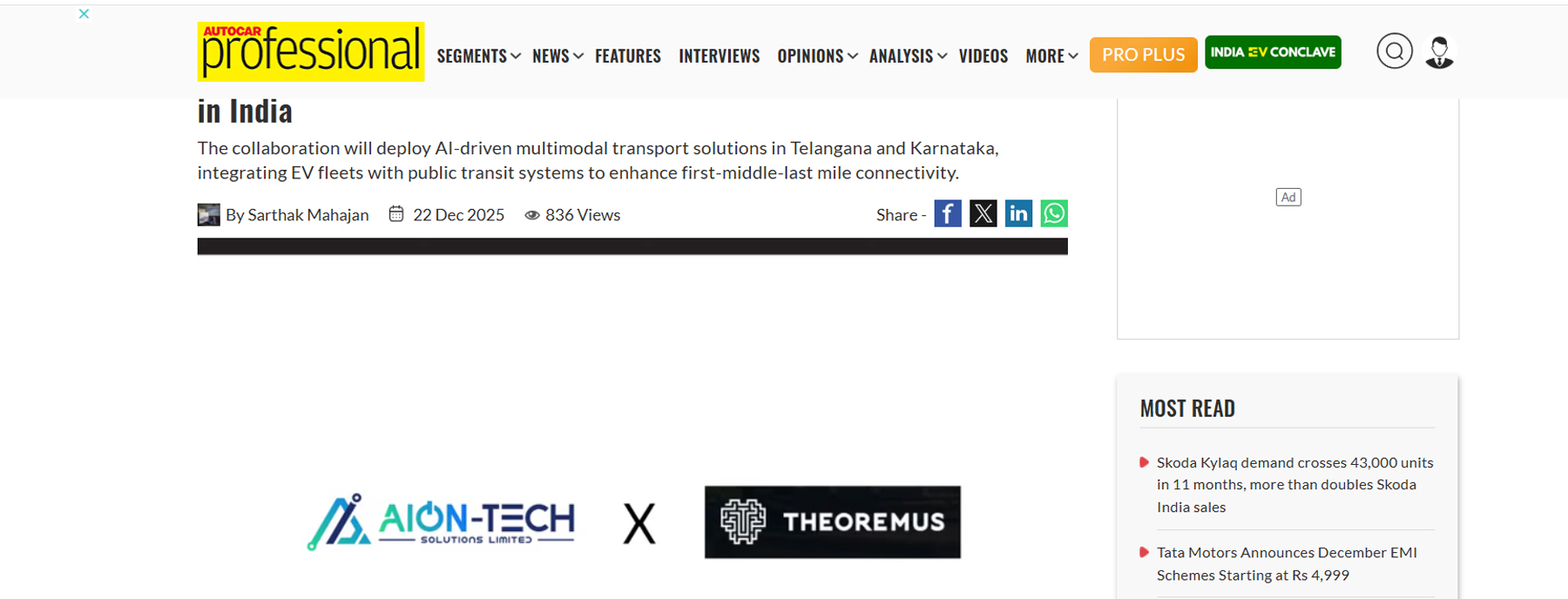 Aion Tech Partners with Theoremus AD to Transform Urban Mobility in India